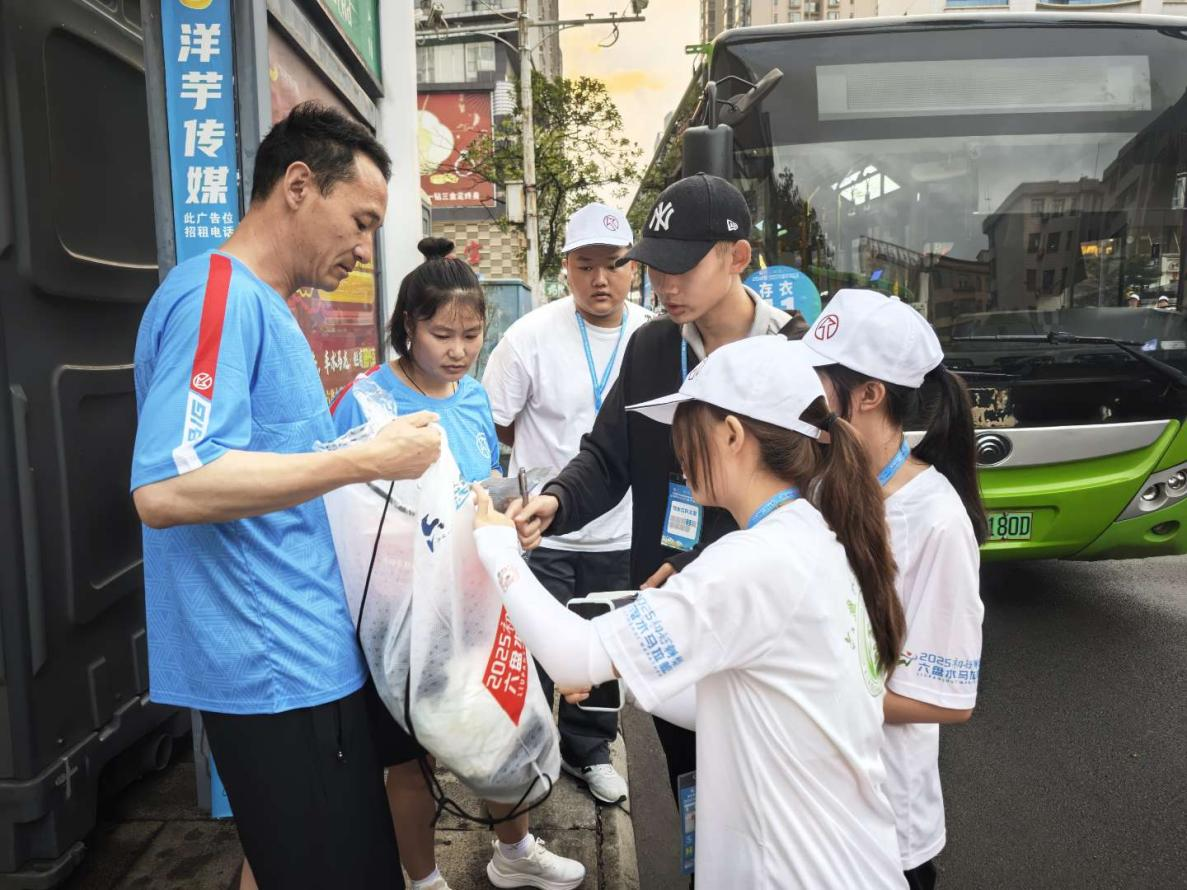 当最后一位跑者冲过终点线,城市的喧闹渐渐散去,志愿者们却仍在忙碌:他们蹲在地上捡拾散落的垃圾,抱着成箱的空水瓶往回收车里搬,存衣处的志愿者们对照清单逐件核对,直到最后一件参赛包被领走。“能成为这次志愿者,我特别荣幸。这次服务让我更加深刻理解了‘挑战自我、永不放弃’的马拉松精神。”志愿者容洋擦拭着额头的汗水,脸上洋溢着满足的笑容。