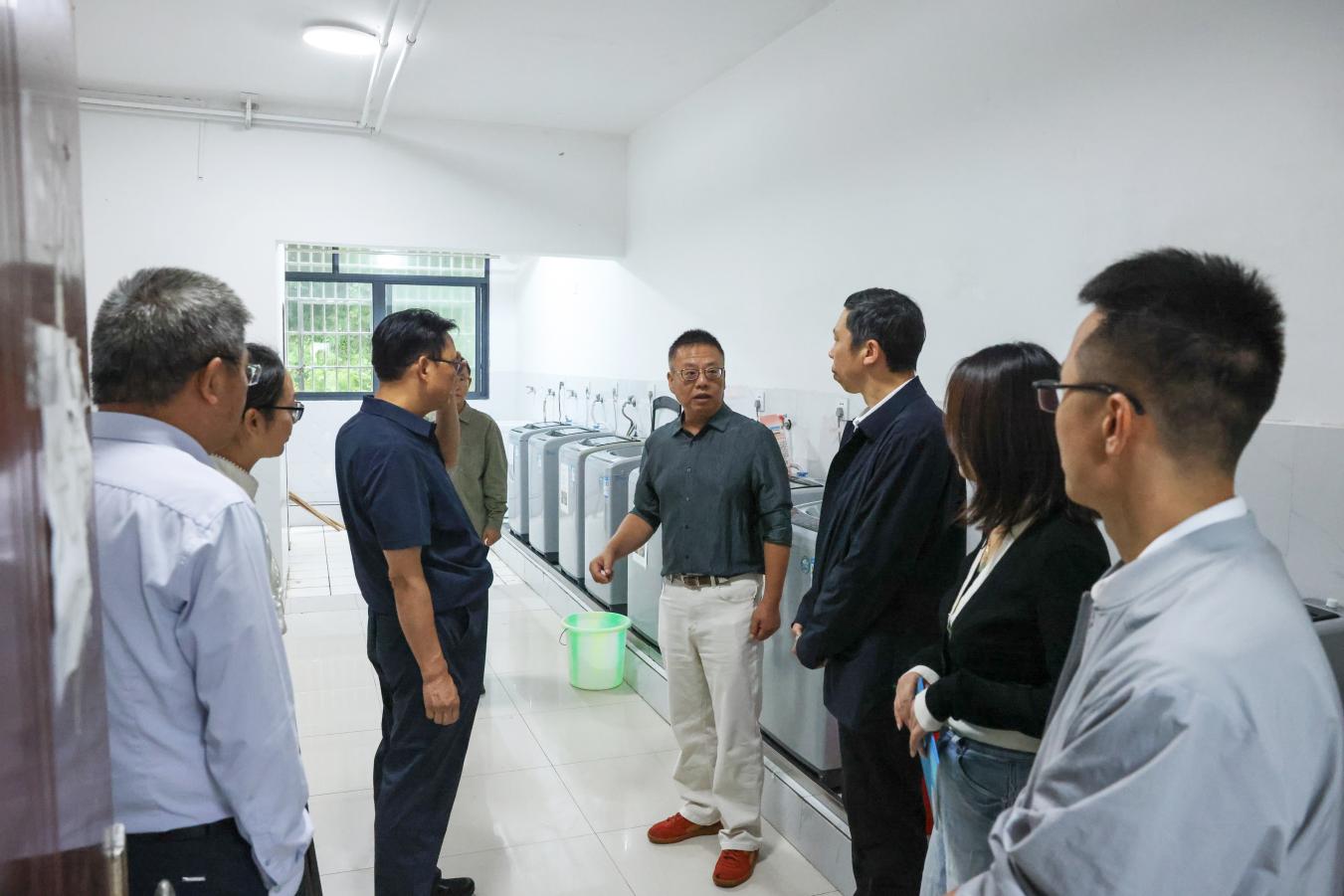 在朝阳校区,胡兴灿、陈应武一行先后走访博学楼、图书馆、监控指挥中心,细致检查教室多媒体设备、课桌椅维护等硬件情况,听取图书资源采购汇报,并对校园安防系统运行、应急处理机制等进行调研。校领导支持,要持续优化教学设施条件,丰富馆藏文献资源,筑牢校园安全防线,为师生教学科研提供坚实支撑。随后,校领导走进学生宿舍,实地查看供水、洗衣等生活设施配置情况。胡兴灿强调,要真正走到学生中去,设身处地了解学生需求,及时完善宿舍配套服务,努力为广大学子营造温馨、舒适、便捷的生活环境。