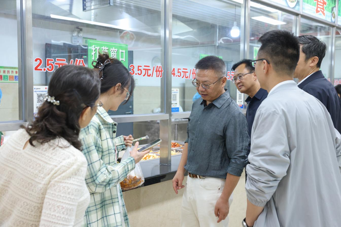 午餐时段,校领导来到龙山校区食堂与同学们一同用餐,在取餐窗口前仔细查看菜品品种、营养搭配及标价情况,并就菜品口味、质量价格和满意度等问题与就餐学生亲切交流,听取大家的意见建议。