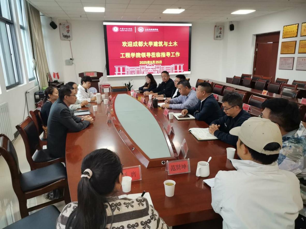 为深化校际合作、共促学科发展,9月25日,成都大学建筑与土木工程学院副院长刘洁一行4人赴我院开展交流活动并同步推进硕士研究生招生宣传工作。