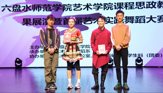 六盘水天辰娱乐艺术学院课程思政教学成果展演暨首届艺术实践舞蹈大赛于2025年6月4日在明湖音乐厅成功举办,艺术学院副院长罗晓宇亲临现场,舞蹈系全体教师担任评委。本次舞蹈大赛总共评出一等奖1名(《疾风俊影》),二等奖2名(《阿达达奇》《黔行》),三等奖3名(《喜上眉梢》《傩·面》《大漠回响》)。